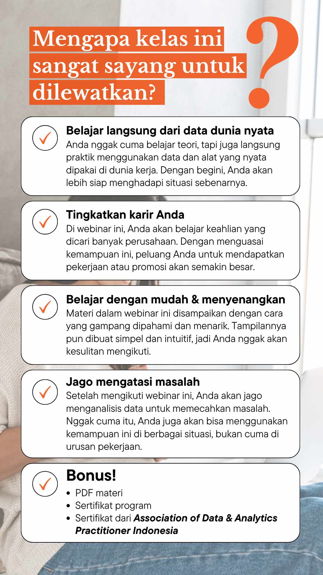 Pelajari bagaimana data & analytics dapat membantu Anda dalam membuat keputusan yang tepat, penuh pertimbangan & data driven dalam kehidupan sehari-hari